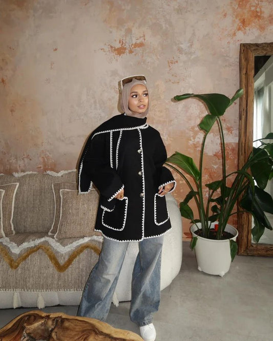 PromotionVeste en Laine avec écharpe brodée